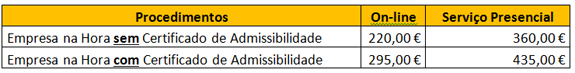 Os custos emolumentares indicativos cobrados pelos Serviços afetos ao RNPC e Conservatória do Registo Comercial pela constituição da sociedade:
